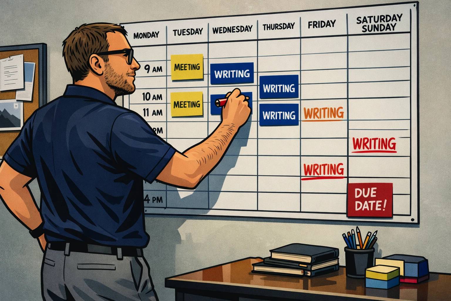 A grad student working hard on their reading schedule.